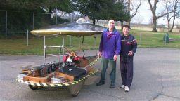 By John Schaefer, Up at 6am, drove over to Fox News (Fox40.com) for live interview. We should be able to get DVD from Slack Video Service 916 351 0424 (I left a message) or slackvideo.com Thursday evening the Towe Museum held a class for docents who will guide visitors through the museum at the end of their docent class, and Marcelo presented his slide show. Forty or fifty attendees will now know about solar cars. Mark and Elaine prepared a delicious dinner. Stayed another night at Elaine’s. x-x-x By Bret O'Connor We knew today was going to be a rainy day, but we ventured out early to meet fox 40 news. We eventually convinced them to do an interview outside because the solar car is the feature. Luckily the afternoon received some sunshine and we were able to array the solar car at the Towe Museum. Finally we have updated the website for all of you who have been begging. |