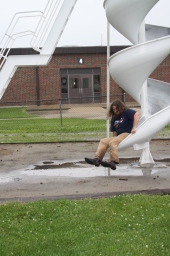 By Jamie from Tampa We woke up to yet another overcast sky. Marcelo uncovered the car and started working on his computer while the rest of us slept in. After waking up, I went in to Wal-mart and got us yogurt and granola for breakfast. We hung out for a few hours and before leaving I went in to All-mart again because McDonald's was calling my name. Man, do I hate both corporate giants but couldn't help myself - I was craving salty fries and sweet fountain coke. After Josh tried to talk me out of it, I hit McDonald's up but not before arguing with a clerk from a so-called "Green" bank located in Wal-mart who claimed they were environmentally friendly for many things that most banks do already, such as on-line banking and check free purchasing (aka debit cards). He tried to tell me that Wal-mart was green and all I could do was go along with it (kind of). Anyway, I used their facilities again before leaving and went back to the car. A Lima reporter came by and took some photos. Marcelo and Josh were grocery shopping so missed the opportunity to talk to him. We then took off and went as far as we could go on 94.7 volts of battery. It didn't get us very far at all. After almost stopping at several places, we took a turn down the road that divides Indiana and Ohio. We had to stop because the charge was at 90 volts and just happened to stop right in front of the home of some very friendly folks (on the Indiana side of the state line). Since the batteries were drained, Marcelo had the chance to test the battery cells and everything looked good. The people had connections with the local Chamber of Commerce and other locals of Monroeville (population approx 1300), so we were then led to the Monroeville Pavilion which is apparently an infamous stop for bike riders who are going cross country. It also turned out that the local high school was having a cook-out at the Pavilion, so we got a free meal for the night. The food was great and the facilities were even better - they had a t.v., washer/dryer, a.c., shower and we were even allowed to park xof1 inside the building with us. There was also a bicycle rider named Kyle staying there for the night. We exchanged stories with him, did some computer work, had a group meeting, then hit the sack. Another lucky stop for the solar car. Hopefully the sun will be out for us in the morning. By Josh; Waking up at Walmart, we waited a good while for some sun. We really didn't see any rays for most of the day, as it was completely overcast. We left the parking lot at 2:30 with only 94 volts! It wasn't looking good for our distance potential today. The crew drove as far as the solar car would go. At least we made it out of Ohio! The solar car battery was depleted about 2 houses west of the state line. I was nervous about parking on just anyone's property, but as usual, anyone who sees the solar car is in such amazement that nothing but positive feedback can emerge. Solar car immunity! As soon as we park, the owners of the farm called in the press, and Marcelo described the car to them. He also removed some of the worn out mylar from the inside, exposing the wires to the solar array. This gave many of us, including our new friends, a glimpse of how the sun travels to the battery. The family directed us to a local pavilion with shower and laundry facilities. It turns out that this small town of Monroeville is actually, a major stop for cross-country bicyclists. The pavilion we pulled into actually allowed us to pull the solar car under the covered patio. There were three or four men on three or four different grills. They were preparing food for a local school baseball banquet, and they invited us to join them. A kind woman named Jennifer showed us around. Apparently the state of Indiana issued a resolution commending the facilities, not only for their assistance with local school programs, but also for their kindness to passing cyclists. It appears that the Monroeville pavilion is the nicest bike stop between Maine and Washington state. They had a kitchen for us to store our groceries from earlier, laundry, shower, a garage for the solar car to fit through in order to get parked inside, and a potluck feast with several different salads and desserts to choose from. The people in this town are so nice, friendly, generous, and supportive of the solar car (even though many of them are into drag racing with not so fuel efficient engines.) We suggested that perhaps drag racing could go solar. With Marcelo's car going 0-50 in 6 seconds, perhaps it could become a popular motor sport. We met a cyclist named Kyle who was my age. He was biking from Maine to Iowa mostly by himself, and with a trailer attached to his bike for luggage. After finishing some food, and introductions, we displayed the solar car for curious locals. This was another great time to get caught up on organizing our footage, and getting some laundry done. We had a solar fellowship meeting, and discussed day-to-day role clarifications. Kyle enjoyed checking out the video footage. We've had some funny moments on tour, and it was hard to keep from laughing at some of our goofier moments. After a hard night's work, we had some ramen noodles ala mozzerella con tomato sauce y fresh garlic. Some moose tracks ice cream also crept its way into our spoons, and into our mouths after a bit. It was great to finally be caught up on laundry, sleep, diet, and video. Monroeville is the best! |