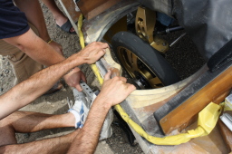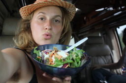 By Josh; Since Claire and Marcelo set up the array yesterday, Laura and I volunteered to do it this morning. I was up around 5 with the sunrise. The sounds of chirping birds rustled me from my slumber, and persuaded me to awaken and get the XOF1 charging. After a gorgeous sunrise, we were greeted by a local Ofordville officer. Someone thought we were camping in Knute's parking lot unlawfully. Fortunately, we were only setting up the car to charge, and not doing anything reprehensible. The officer let us go, and we went to a local gas station for a bathroom. We would go in the bushes, but apparently someone has been watching us, seeing as the cops were phoned in. The gas station was quite cool, being built in an old house. It was very old, yet fully operational. It turned out that Bill, who worked at the Ofordville gas station for more than 30 years was good friends with Johnny Cash in the 1960s. He even had several photos up in the shop. Laura and I slung some OJ back to the team. Claire made us some sandwiches. They were filled with greens and goodies for the day's diet. We worked on updating the website for a bit while the array charged. I had a conversation with a man named Butch about renewable energy, and we soon left after the battery was almost full. We drove for a while, getting amazing landscape shots. After a bit, Marcelo decided we needed an XOF1 tire check. The tire would not budge, but I finally pushed it loose with help from Willy and Marcelo. After struggling with the tire for some time, we packed up and kept going. We stopped in Kickapoo for Ice Cream and sugary drinks. The caramel crème soda was pretty terrible. Laura and Willy spit guava seeds at each other until the cops came because the donation bucket was left out, thus representing solicitation. We continued running around all afternoon taking photos, on bridges, highways, and fields. We finally made it to Minnesota after a day of speeding through Wisconsin. Hopefully we will get better media tomorrow. The crew ended the night with some cups of noodles and tea over a small gas stove. The shoulder we parked on was quite large, and the view was amazing. It is incredible to me after four years of living in New Orleans, and enjoying the Mississippi, I was now going to sleep by it in Minnesota...indescribably and mind-bogglingly awesome! By Marcelo; It was almost one year ago, I was at the same parking lot at Knutes Bar and Grill. I spent that night sleeping undearneath the solar car inside the trailer. I struggled to drive XOF1 to Ofordville, its batteries were empty, it was a painfully slow drive, it was dark, I probably could walk was faster than I was driving when I finally brought it to a stop, pulled into someone's drive way, 10 miles from Ofordville, load the solar car into the trailer. Drove to Ofordville, Knutes parking became the stop for the night. There I met Don (the cook) and a few other people. The next day a number of people stopped by to see the solar car, made new friends. I never thought I would be back driving the solar car on a return journey to the Artic Circle. Looking back at this past year, WOW! what a year! what adventure! It was very late at night or early in the morning by the time it quited down with patrons leaving the stablishment and got quiet enough I could sleep. It wasn't much different last night. However, this time was the solar car crew enjoying themselfs. I thought I should let them have a bit of fun. The first time around, I was being asked things like What is this? how does it work? you wan to drive this where? drive a solar car to the Artic? are you crazy?, etc... questions reflecting skepsism. One year and ~18,000 miles later I noticed a paradigme shift, the skeptcism is no longer there, the "impossible" is now possible. The questions I am now being asked reflect the change in the thinking process, and YES is the right answer! Today had to replace one of the most stuburn wheels, ever on the solar car. The day started sunny, got haze, overcast, cutting the drive short. Only 192 miles It was great to see Don and Butch again. By Laura At 5 am the sky is in rewind, replaying last night’s sunset for this morning’s rising. The greatest show on earth is the rising and setting of the sun, filling the eyes and skies with a palate of colors so warm and inspiring. The cold Wisconsin air smells like apple juice and makes me thirsty. Josh, Willy Wonka and I set up the array and somehow provoke the locals to call the cops on us. Apparently someone thought we were setting up a tent and camping right there next to the street in front of the bar. Adding to the list of solar car mistaken identity of ufo and bicycle is now a tent. The officer understands the situation and we snap a photo of him in his cruiser next to the solar car. Josh and I wander in search of juice and facilities still before 6am and happen upon a tiny old time gas station. The owner has a candid and fading picture of Johnny Cash with a guitar, up on the wall behind the counter. He says Johnny was a friend of his back in the 60’s...we were just singing Johnny Cash songs in the van yesterday. Back at Knutes we enjoy our juice and do some work while the car is charging. A man from the car dealership across the street has come over and is interested in our motives for being on this adventure. He got married young and settled down too quick to do any traveling abroad. “So, is this similar to what the hippies did, traveling around...is this like that- some kind of hippie trip?” He continues on a sort of rant about us having long hair and not wearing suits, me and my uncoiffed hair and no makeup...I’m not sure if he is mocking us or if he could himself, leave the suit, job and societal norms to join us on our gypsy road tour with the solar car. Passing farms in Wisconsin the animals take special notice of the solar car today. I see a horse stop munching on grass to look at the solar car and follow it with it’s gaze as 