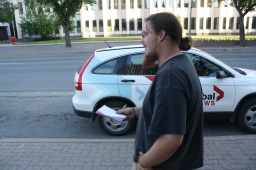 interview with a news crew in Brandon I noticed a hitch-hiker on the side